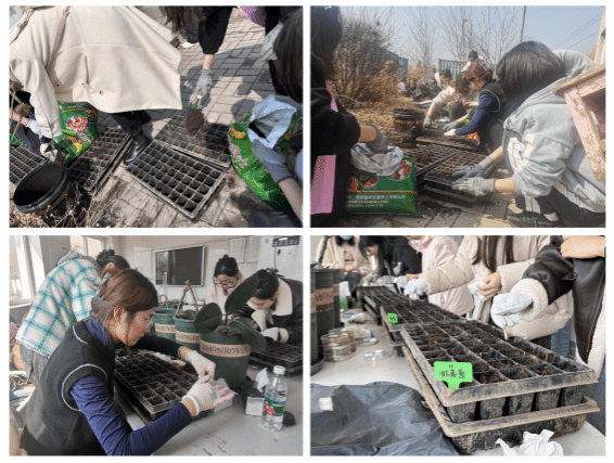 人勤春来早,万象始“耕”新。3月23日,支部党员在生态园实验室集合,按实验室花园的设计和施工图纸分组进行进行清扫育苗联、填土、浇水、压盘、筛籽、播种等工作,为后续设计转化与植物移栽入园奠定坚实基础。