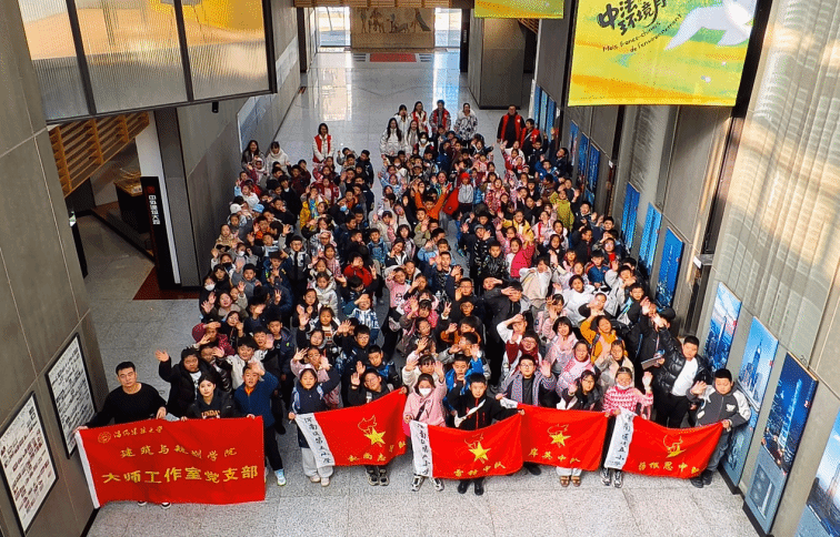 在悬挂着“当代生土与植物纤维建筑”展览主题的宽阔展厅内,来自浑南区第五小学的“小根娃”们,在学院师生党员志愿者的引导下,饶有兴致地观摩学习。展览聚焦可持续建筑理念,将专业的建筑知识与环保教育、美育深度融合。williamhill中国大师工作室党支部的党员们化身讲解员,用浅显易懂的语言为小学生们揭开了绿色建筑的神秘面纱,将思政教育、专业启蒙与国际视野培养融入观展全过程,实现了“组织共建、活动共联”的初衷。