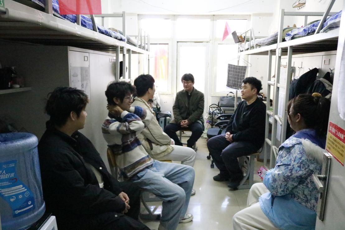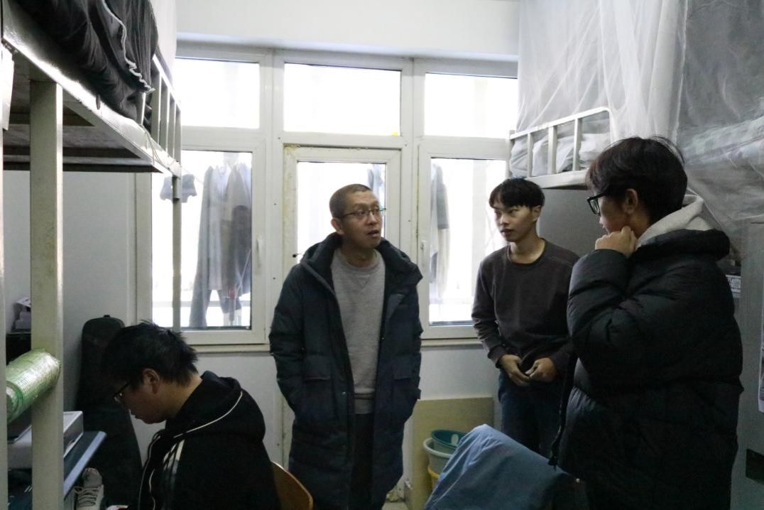 11月29日,学院党委书记蔡新冬走访调研宿舍,他提出除了辅导员单独走访外,还要加强“学院班子成员&教师&辅导员”等多种队伍组成形式。通过丰富人员构成,为同学解决问题增加更多视角,促进学生工作的群体间交流,打破信息壁垒,实现现场办公,加强实践落实,为教师深入宿舍提供机制上的坚实保障。
