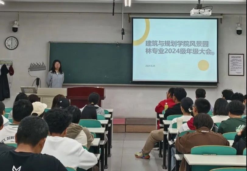 学院在甲2-201举行年级大会与军训动员大会。同学们身着作训服,正式迎来了大学的第一课——军训。学院的辅导员、助理班主任与2024级全体同学出席了本次年级大会。建筑系辅导员并负责学院国防教育工作的赵博老师为同学们进行了军训动员,讲述了何为军训,为什么要军训,军训的注意事项,阐述了军训这门课程的重要性,对同学们军训的表现提出了高度要求与期望。景观系辅导员陈施宇老师为同学们介绍了辅导员职责与学生工作相关事项,提示了奖励与处分的规定,对校园安全与个人及财产安全敲响了警钟,也为同学进行了大学生正确心理教育的引导。学院辅导员表示了对新生的热烈欢迎与殷切祝福。