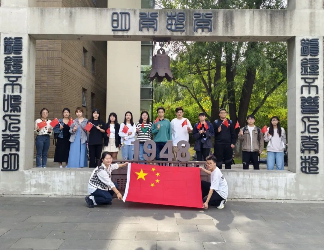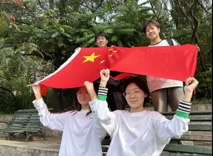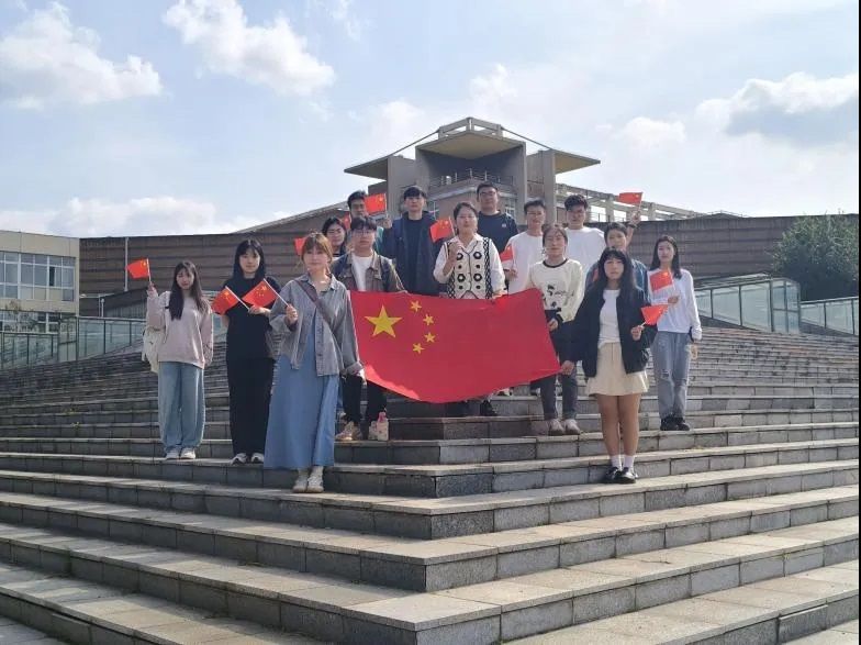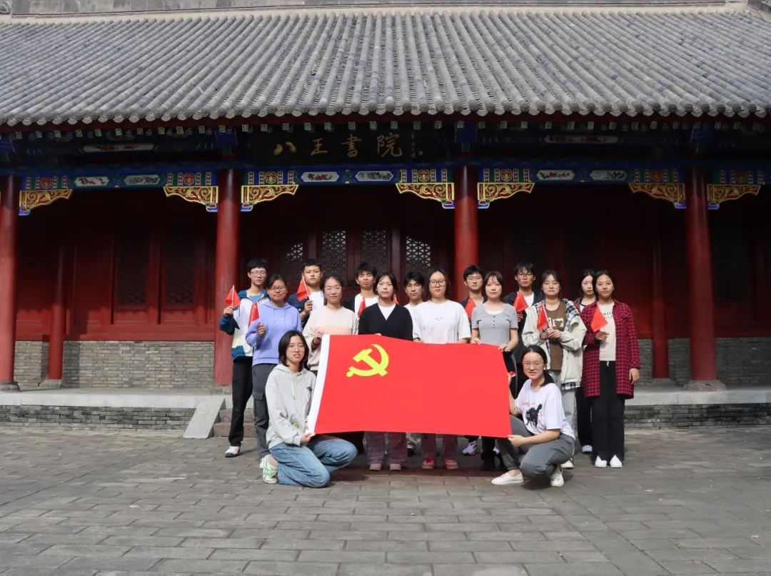 八王书院前,古朴的建筑和苍翠的树木把同学们胸前的国旗在阳光下映衬得格外鲜艳,仿佛在向大家诉说着历史的厚重与传承的力量。在合影期间,每个同学的眼神中都流露出对国旗的敬意和自豪。