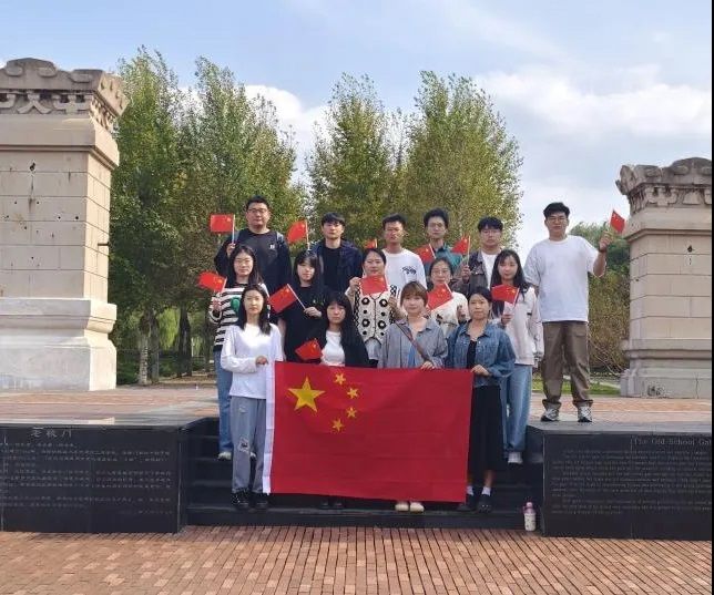老校门、校史馆都是独特的学校历史回忆符号 ,同学们排排站好,举起红旗,一同记录下这珍贵的一刻。