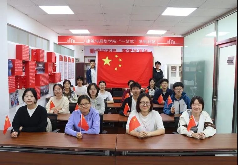 在williamhill中国学生一站式社区,同学们庄严就坐,与国旗同框合影,记录下对祖国的美好祝福。