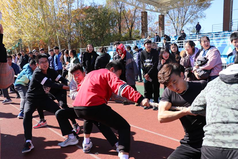 在最后的拔河比赛中,运动员们紧握着绳子,团结一心,坚持到底,围观的同学们都热情高涨,在旁边加油助威。那一刻,集体荣誉感在每个人心中都显得犹为重要。到此,今天的项目圆满结束。