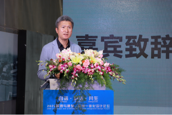 首场学术报告由全国工程勘察设计大师、广东省建筑设计研究院有限公司首席总建筑师陈雄主持。陈雄指出,本次论坛以“自语·对话·共生”为主题,意在说明建筑内外与景观环境之间的内在关联,从自我突破完善到打破二者间的边界,最终实现景观、建筑、室内的融合发展。