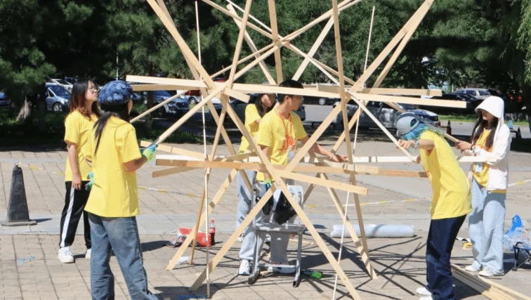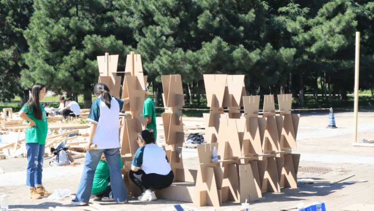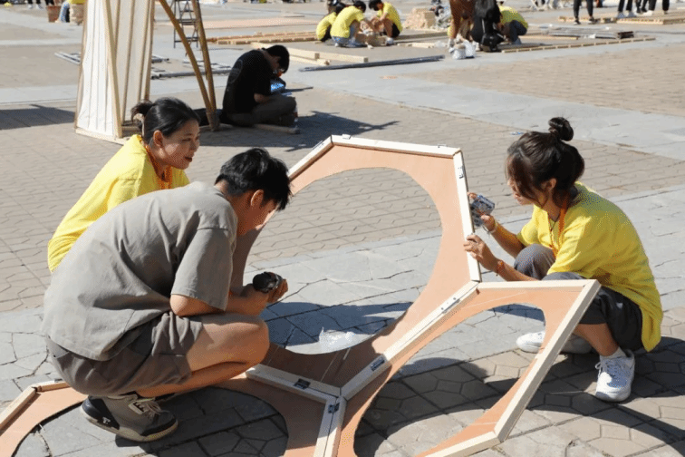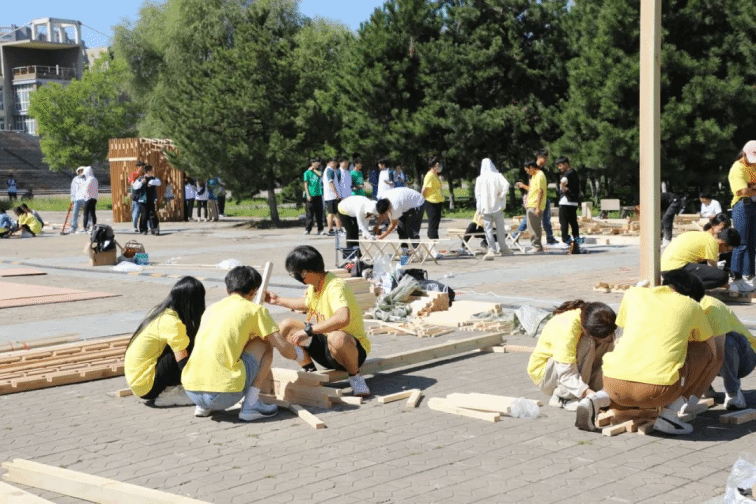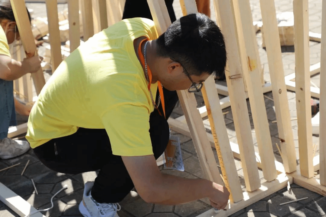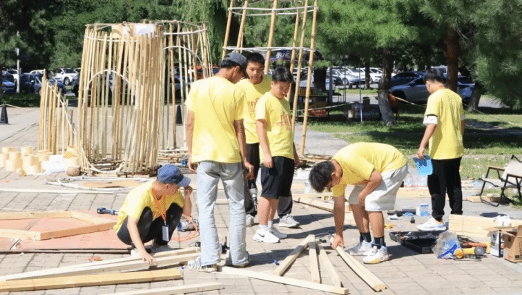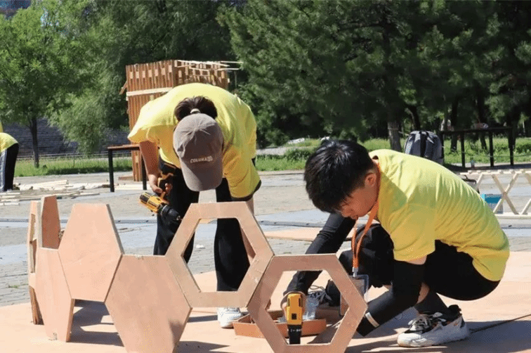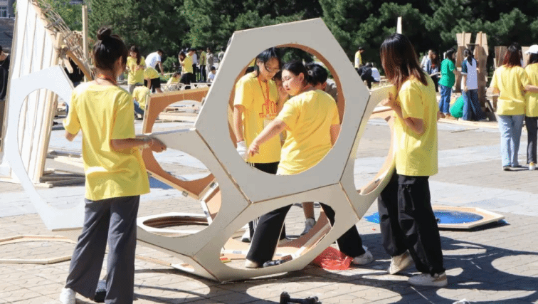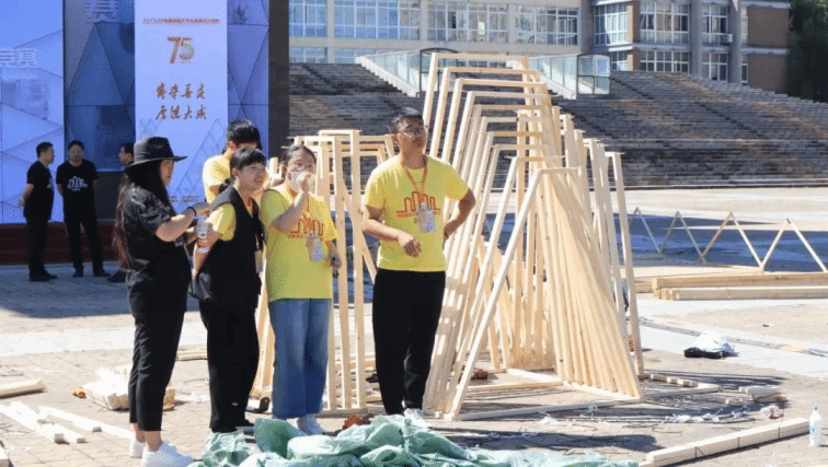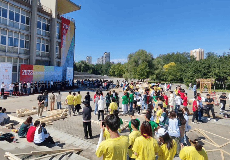 本届搭建设计竞赛主题为“戏木童趣”,大赛组委会共收到来自17所院校共115份作品,其中,推荐参赛作品111份。经过专家评审小组的初评,最终,来自我校、大连理工大学、中国矿业大学等14所高校的32支学生代表队入围决赛,进行了为期3天的现场搭建。