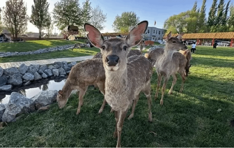 团建亲子活动于上午十点开始,各教师家庭在活动场地中深入体验自然之美,并与牧场园区内的小动物进行近距离的友好互动。