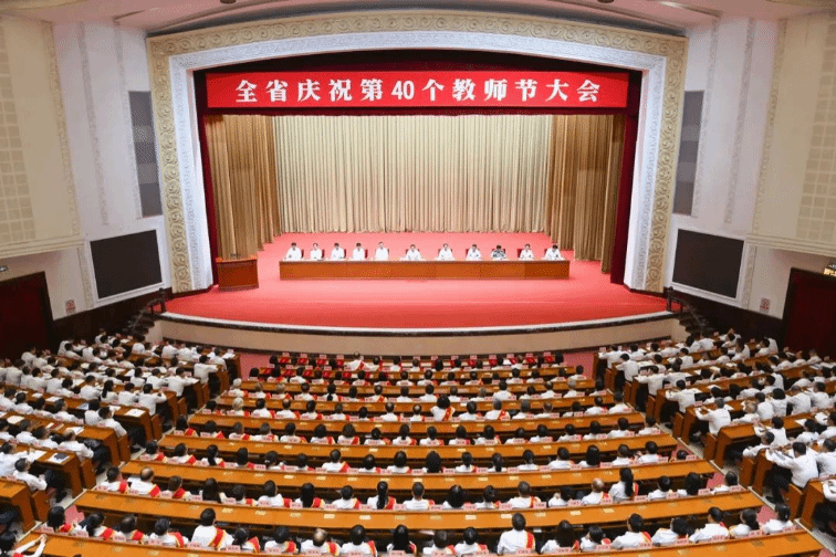 省委书记、省人大常委会主任郝鹏代表省委、省政府,向全省教师和教育工作者致以节日的问候,向新中国成立75年来为教育事业付出心血和汗水的广大教师和教育工作者致以崇高的敬意,为张伶伶教授等教育工作者光荣从教40年优秀教师代表颁发纪念证书。