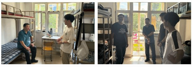 学院领导对寝室进行了走访。黄勇院长与蔡新冬书记走访参观了男生寝室十三舍。对寝室内务的管理提出了指导性意见,对新同学入住的情况进行了问候与关心