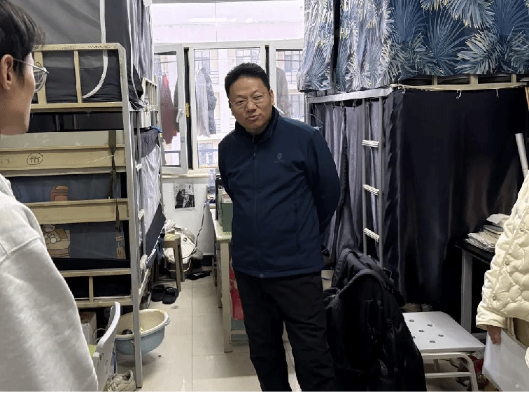 11月29日,学院党委书记蔡新冬走访调研宿舍,他提出除了辅导员单独走访外,还要加强“学院班子成员&教师&辅导员”等多种队伍组成形式。通过丰富人员构成,为同学解决问题增加更多视角,促进学生工作的群体间交流,打破信息壁垒,实现现场办公,加强实践落实,为教师深入宿舍提供机制上的坚实保障。