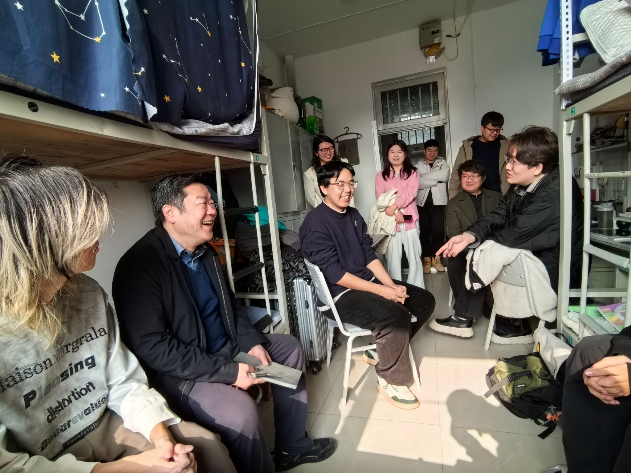 学院党委书记蔡新冬、建筑博物馆馆长张群、建筑博物馆副馆长刘万里、教师张蔷蔷深入研究生寝室,开展走访关怀活动。走访期间,蔡书记与学生展开亲切交谈,仔细询问大家的学习和生活情况,以及学生们对于宿舍的各种需求,并仔细查看宿舍设施情况,叮嘱学生注意防火与用电安全。同时强调,春季是流感高发季节,告诫同学们要注意宿舍卫生,及时开窗通风。