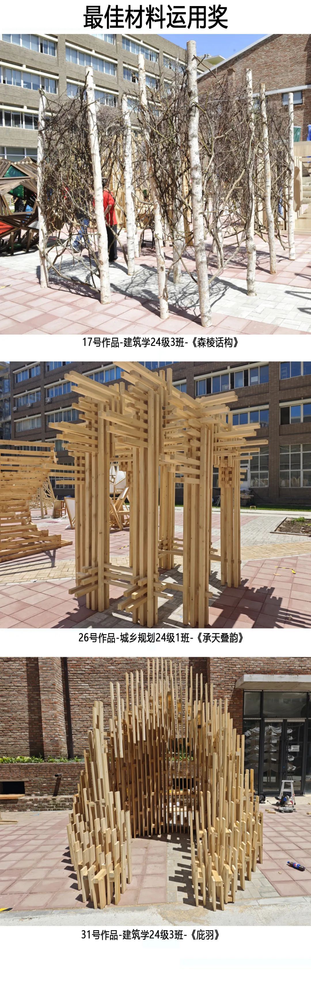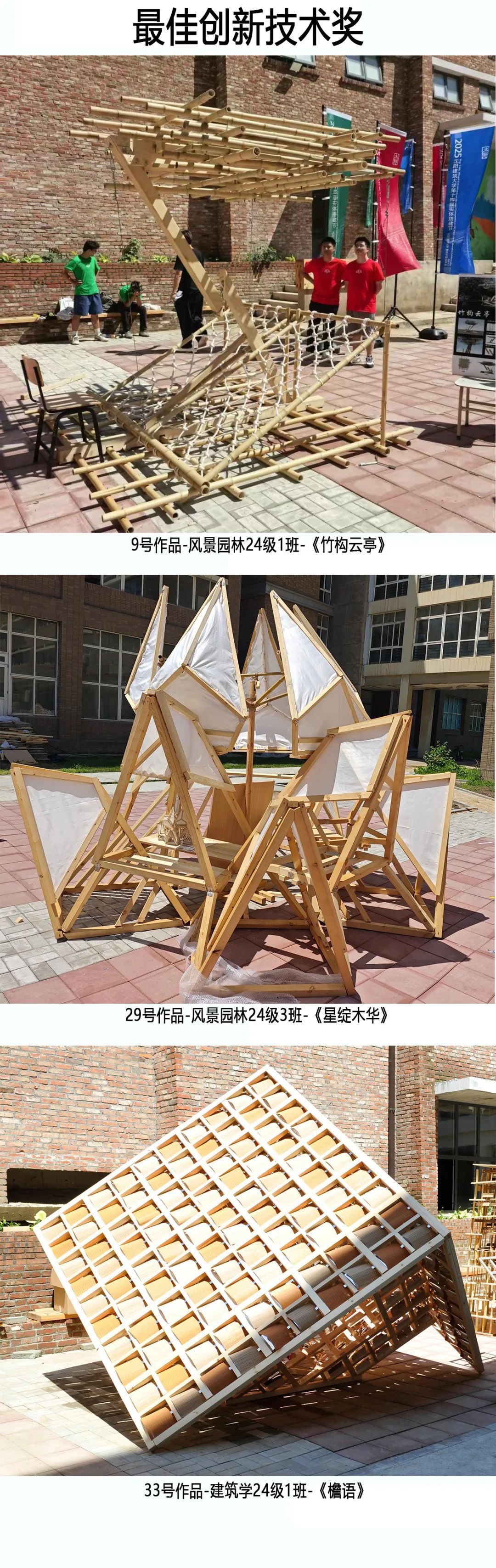 评审环节,各参赛队由一名同学进行作品讲解,经过激烈角逐及专家讨论,投票产生了以下18个获奖作品,获奖作品将参加在义县奉国寺举行的全国搭架设计竞赛决赛。