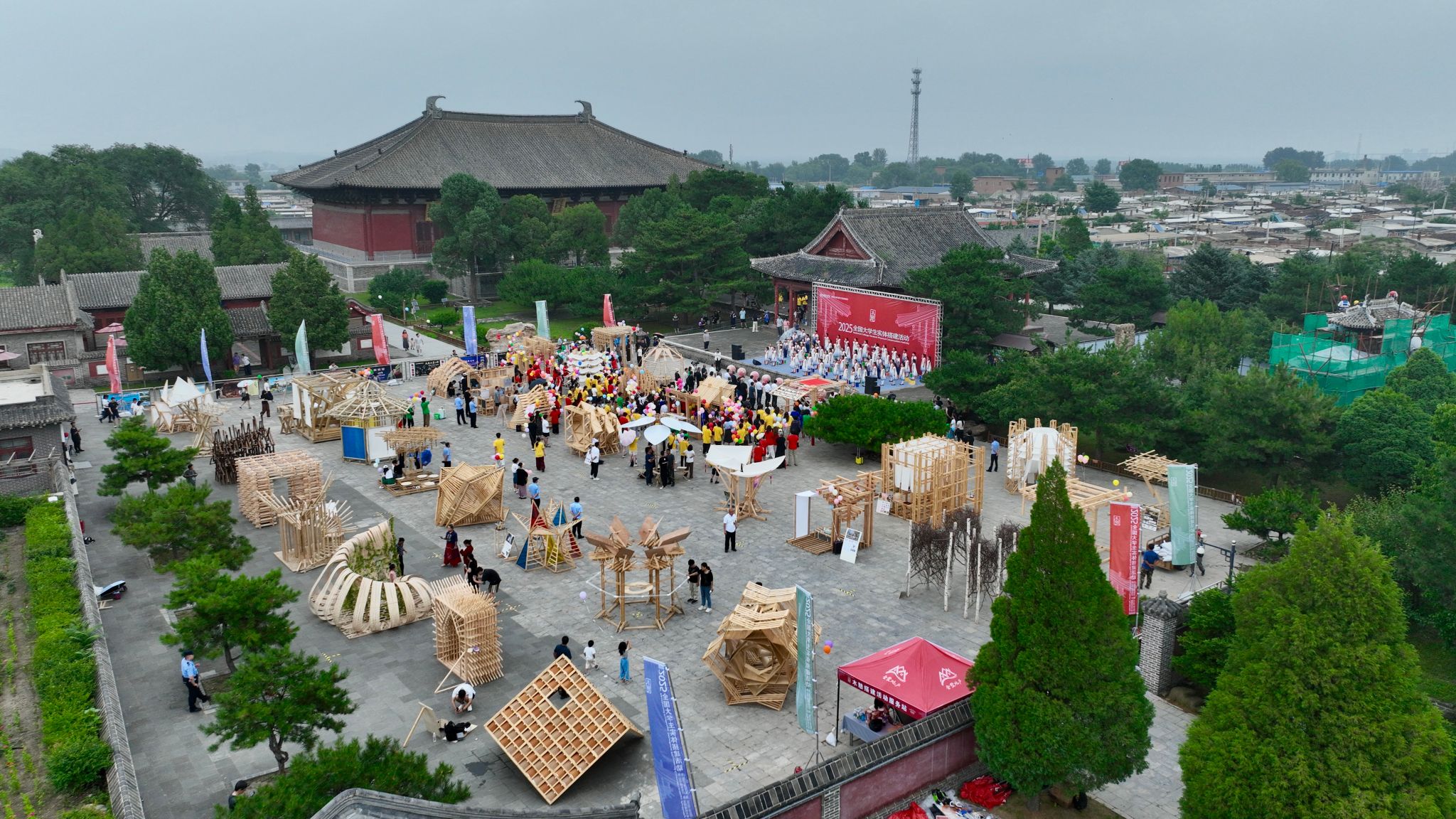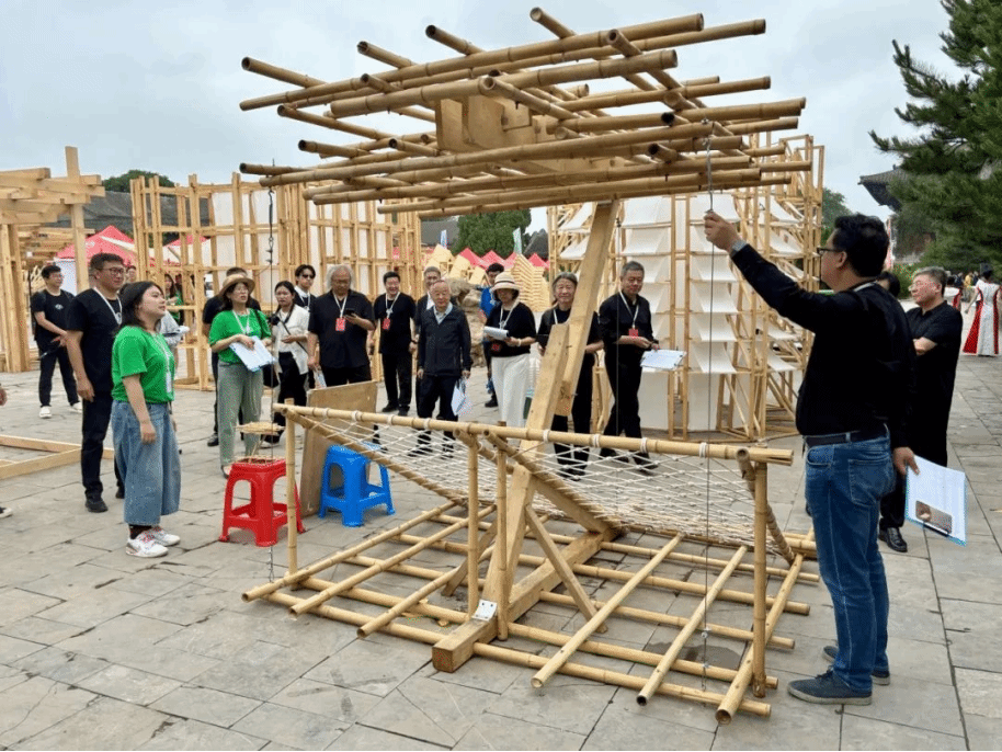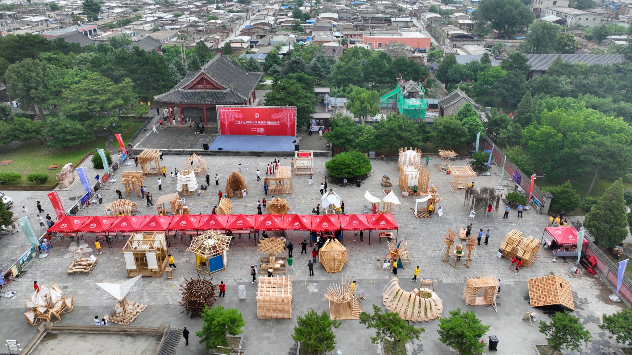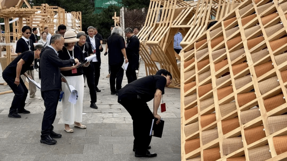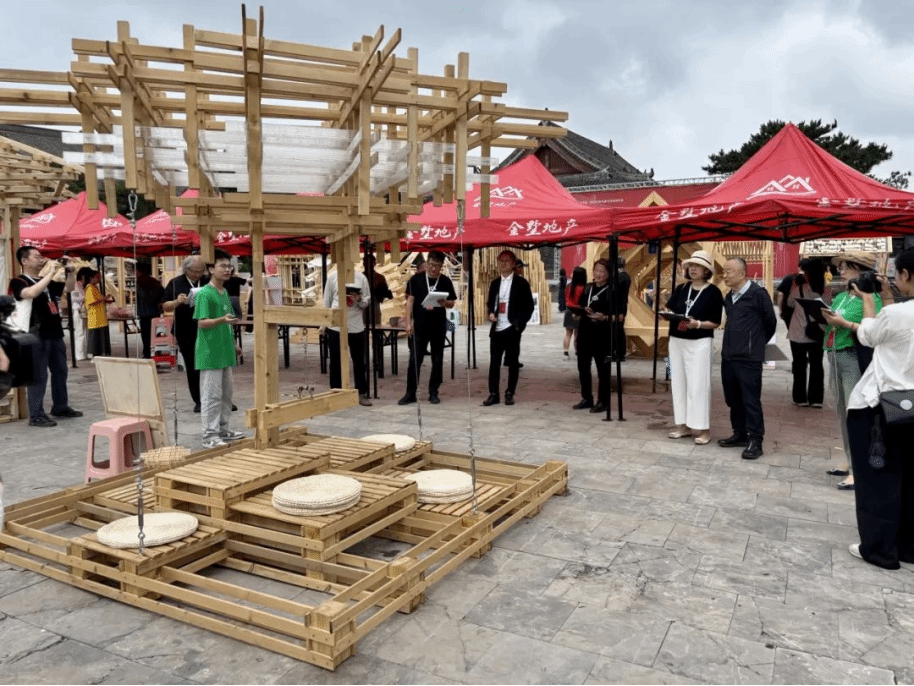 本届竞赛以“对话”为主题,由全国工程勘察设计大师张伶伶教授命题,旨在引导青年学子与历史文脉对话(传承与演绎)、与自然天地对话(冥想与对望)、与千年古刹对话(致敬与创新)。命题人张伶伶大师在接受采访时深刻阐释了主题的时代意义:“在今天强调中国文化自信的时代里,这样的活动对青年一代非常有意义,有助于青年学子未来对中国传统文化形成强烈的认知。‘对话’这个主题,希望引导学子们与木构营造法式、经典传统建筑以及千年古刹奉国寺进行深度交流,体现现代科技与中国传统营造智慧的碰撞,激发新的火花。”在奉国寺庄严而富有底蕴的场地上,参赛学生们运用木材,将设计图纸转化为精巧的实体构筑物。他们精心挑选材料,雕琢细节,反复推敲组装,不仅展现了扎实的专业技能、丰富的想象力与创新精神,更在实践中深化了对材料性能、建造技艺及建筑物理特性的理解。张伶伶大师特别赞扬了“00后”学子们“不惧高温与骤雨”的实践精神,认为他们在艰苦的搭建过程中得到了宝贵锤炼,并建议义县政府“遴选部分优秀作品,选择合适场所予以保留并发挥作用”。古老寺院的凝重与现代设计的活力在此交织,共同谱写了一曲传统与现代交融的壮丽诗篇,吸引了众多游客和当地民众驻足欣赏,线上线下反响热烈。