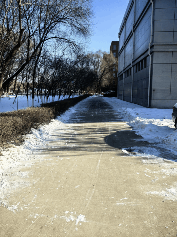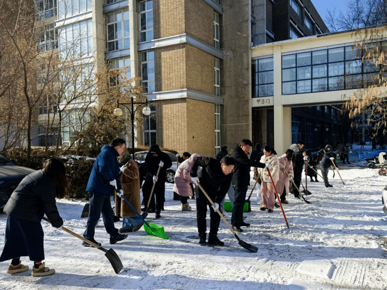尽管户外寒风凛冽、气温极低,积雪覆盖厚实且部分路段已结冰,但丝毫没有阻挡师生们的劳动热情。大家分工协作、配合默契,有的挥舞铁锹破除冰层,有的手持扫帚清扫残雪,有的合力推送积雪至指定堆放点,现场呈现出一派热火朝天的劳动景象。经过数小时的辛勤奋战,学院责任区域内的主干道、台阶、楼宇出入口等关键部位的积雪和冰层被彻底清除,为留校师生开辟出了一条条安全畅通的“暖心通道”,圆满完成了“响应零延迟、除雪无死角、安全有保障”的工作要求。
