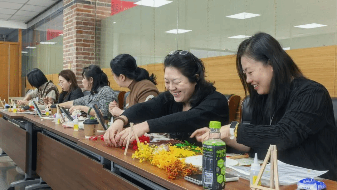 活动伊始,女教职工们便纷纷围坐,开启了属于自己的团扇创作之旅,让“纨扇轻盈宝月轮,莺花点染玉园春”的春日诗意,在指尖的创作中慢慢流淌。活动现场暖意融融,处处洋溢着欢乐的节日氛围。一把把团扇凝萃着中式美学的雅致,女教职工们以巧手凝匠心,以团扇绘春光,共度温馨美好的节日时光。