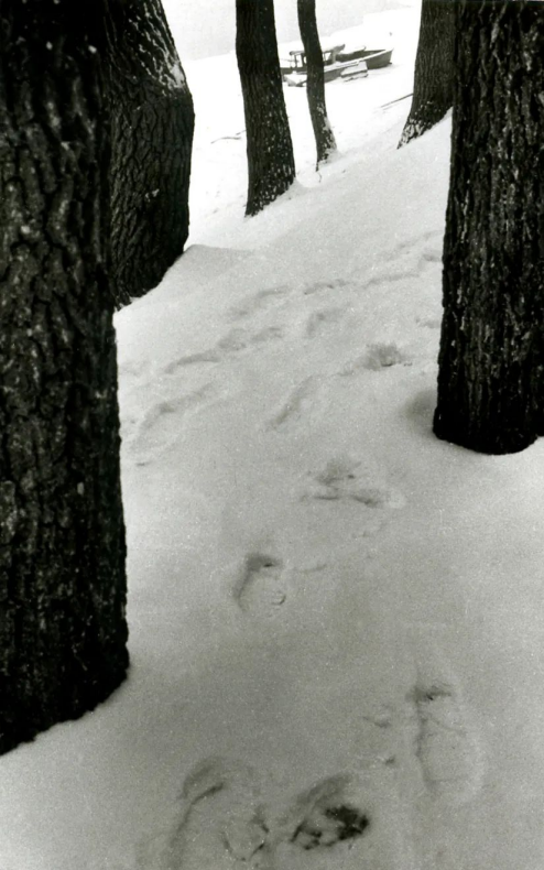 置于天作建筑工作室入口的一张摄影作品,是张伶伶教授于1985年在松花江边拍摄的。画面中的足迹在积雪中漫向远方。透过用心构图的画面,我们似乎看到,那个留下一行足迹的人便似张伶伶教授一般,正孤独地迎着风雪,坚定地前行。