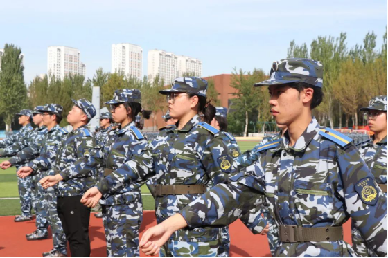 平平整整的军装,方方正正的军被,规规矩矩的军容,细致严格的军训要求与规定让新生离开了在亲人和家庭关照下的“舒适圈”,教会他们自立、自律、自强。
