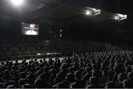 9月18日,是一个不敢忘、不能忘的日子,在这个时间节点上,军训的意义就显得格外特殊且重大。当晚,学校组织新生统一在大操场观看影片《东京审判》。建院学子在荧幕之下坐姿笔直,认真观看。影片激发了学生强烈的爱国主义热情,增强了学生的国防观念,为新生立志进取、自强奋斗提供了强大的精神支柱。